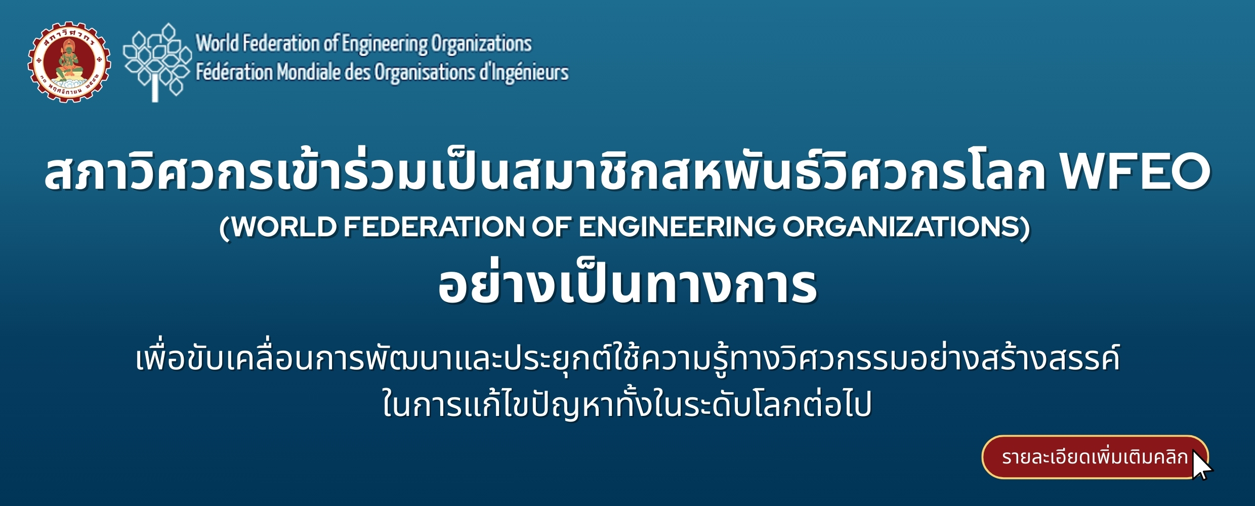 สภาวิศวกรเปิดรับสมัครผู้แทนประเทศไทยเข้าร่วมคณะกรรมการและคณะทำงานของ WFEO (World Federation of Engineering Organizations)