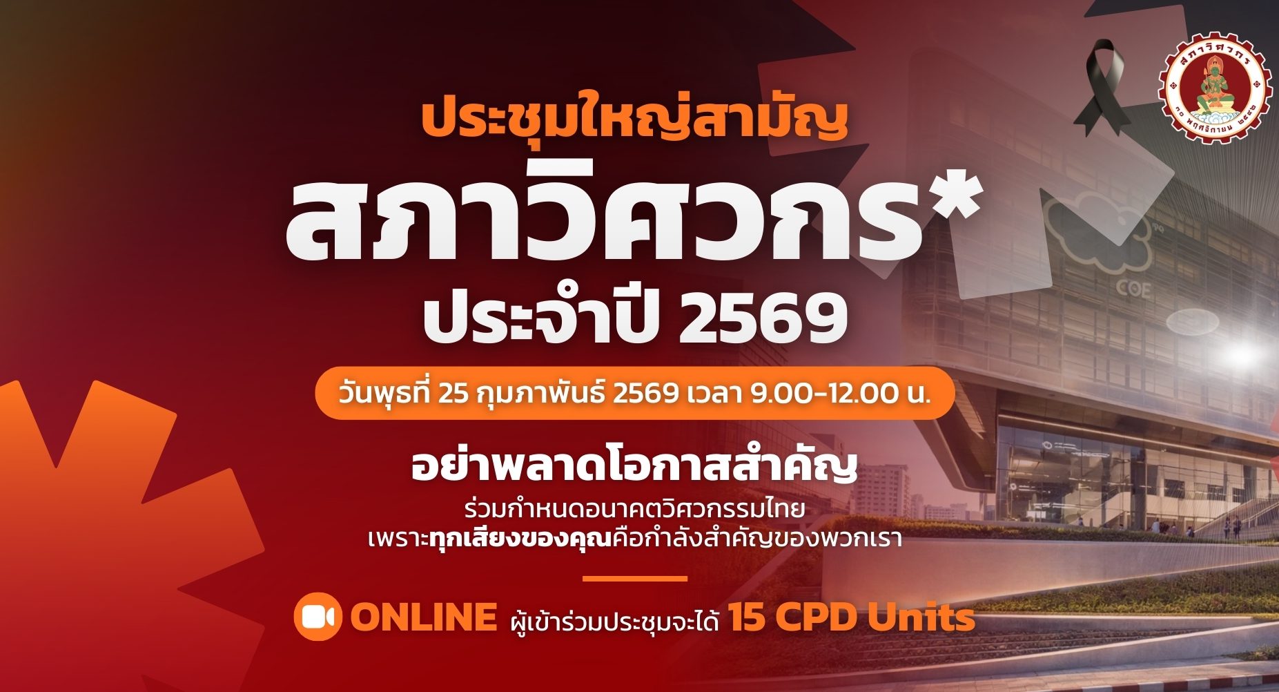 ลงทะเบียน Scan QR Code หรือ ขอเรียนเชิญสมาชิกสภาวิศวกรเข้าร่วมการประชุมใหญ่สามัญสภาวิศวกร ประจำปี 2569 ในวันที่ 25 กุมภาพันธ์ 2569 เวลา 09.00-12.00 น. ด้วยวิธีการประชุมผ่านสื่ออิเล็กทรอนิกส์ ตามพระราชกำหนดว่าด้วยการประชุมผ่านสื่ออิเล็กทรอนิกส์ พ.ศ. 2563 และกฎหมายอื่นที่เกี่ยวข้อง โดยสามารถลงทะเบียนเข้าร่วมประชุมได้ตั้งแต่วันที่ 25 มกราคม 2569 เป็นต้นไป (ติดตามรับชมการถ่ายทอดสดการประชุมใหญ่ฯ ผ่านช่องทางที่สภาวิศวกรกำหนด) ทั้งนี้ สมาชิกสามารถศึกษาคู่มือการลงทะเบียนเข้าร่วมประชุมใหญ่สามัญสภาวิศวกร ประจำปี 2569 การติดตั้งและการใช้งานโปรแกรมการประชุมผ่านสื่ออิเล็กทรอนิกส์ได้ทางเว็บไซต์สภาวิศวกร www.coe.or.th อนึ่ง สมาชิกสามารถดาวน์โหลดเอกสารประกอบการประชุมและเอกสารอื่น ๆ ที่เกี่ยวข้องได้ที่ www.coe.or.th ได้ตั้งแต่วันที่ 10 กุมภาพันธ์ 2569 หรือสอบถามเพิ่มเติมที่ สายด่วน 1303 หมายเหตุ ในการประชุมครั้งนี้ประธานที่ประชุมกำหนดวิธีนับเสียงลงมติทุกวาระการประชุม หรือในการขอความเห็นชอบต่าง ๆ ดังนี้ 1. จำนวนสมาชิกที่ลงคะแนน เห็นด้วย = A2. จำนวนสมาชิกที่ลงคะแนน ไม่เห็นด้วย = B3. จำนวนผู้ที่ลงคะแนน งดออกเสียง = C4. จำนวนสมาชิกที่เข้าประชุมคือ D = A + B + C […]