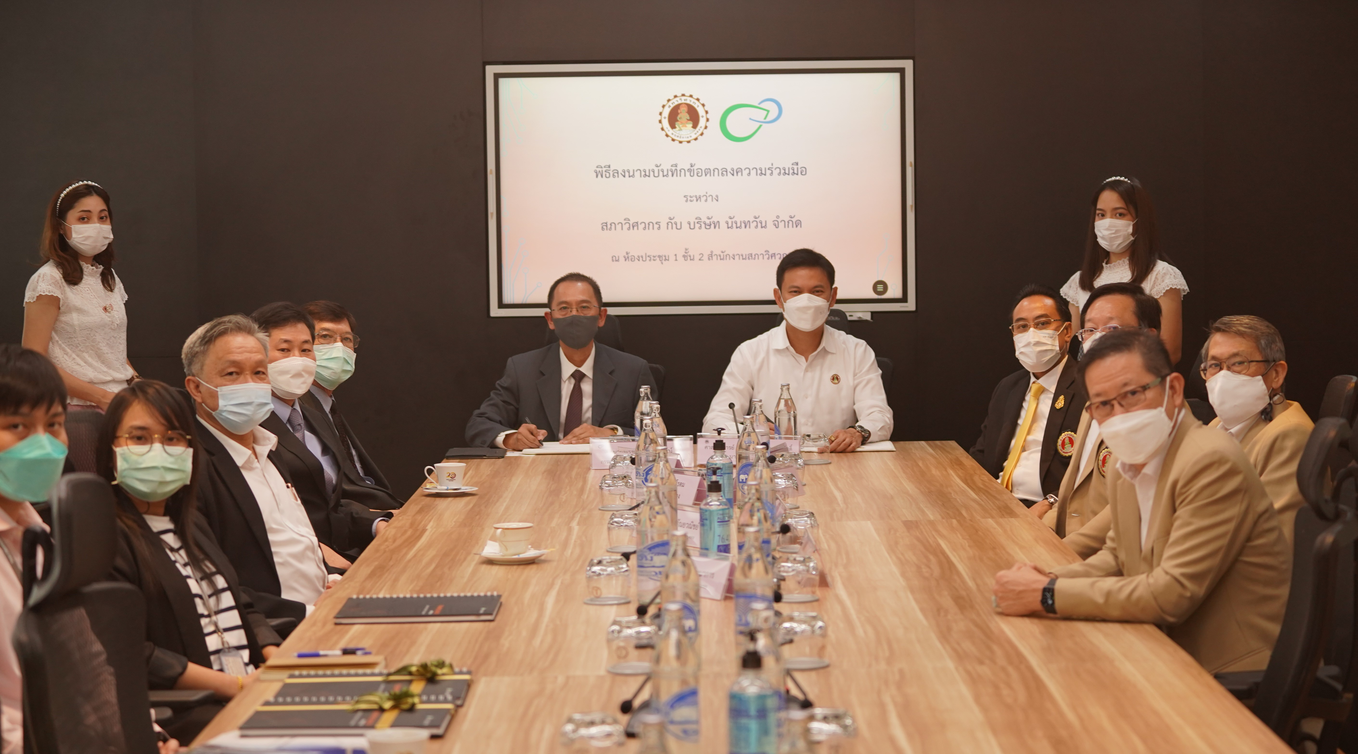 พิธีลงนามบันทึกข้อตกลงความร่วมมือ (MOU) ระหว่าง สภาวิศวกร กับบริษัท นันทวัน จำกัด โดยศาสตราจารย์ ดร.สุชัชวีร์ สุวรรณสวัสดิ์ นายกสภาวิศวกร กับ นายพรชัย สิทธิยากรณ์ กรรมการผู้อำนวยการ บริษัท นันทวัน จำกัด เพื่อพัฒนาคุณภาพทางวิชาการให้แก่บุคลากรที่เกี่ยวข้องกับอุตสาหกรรมก่อสร้างของไทย โดยเน้นการมีส่วนร่วมของผู้ผลิตวัสดุ ผู้ประกอบวิชาชีพ อาจารย์ นักศึกษา หน่วยงานของรัฐและเอกชน ในการจัดทำโครงการวิชาการรูปแบบต่าง ๆ ร่วมกัน เพื่อพัฒนาคุณภาพทางวิชาการให้แก่บุคลากรที่เกี่ยวข้องกับอุตสาหกรรมก่อสร้างของไทย การแลกเปลี่ยนเรียนรู้และพัฒนาวิชาชีพทางด้านวิศวกรรมความปลอดภัย และการบริหารจัดการเกี่ยวกับการก่อสร้าง เป็นไปอย่างมีประสิทธิภาพ รวมถึงยกระดับมาตรฐานวิศวกรไทยให้มีความรู้ ความสามารถ มีความรับผิดชอบ พัฒนาขีดความสามารถของวิศวกรไทยให้มีความพร้อมรับการเปลี่ยนแปลง อย่างรวดเร็วในยุคดิสรัปชัน ส่งเสริมคุณภาพการปฏิบัติงานของผู้ประกอบวิชาชีพวิศวกรรมควบคุมให้ทัดเทียม กับนานาอารยประเทศ โดยมีผู้ช่วยศาสตราจารย์ พิศิษฐ์ แสง-ชูโต เลขาธิการสภาวิศวกร และนายสุรเดช ตันชัชวาล ผู้จัดการทั่วไปฝ่ายบริหารทรัพยากรบุคคล ศูนย์ฝึกอบรมไทย โอบายาชิ เทรนนิ่ง เซ็นเตอร์ ร่วมลงนามเป็นสักขีพยาน ในวันอังคารที่ 30 พฤศจิกายน 2564 ณ สำนักงานสภาวิศวกร