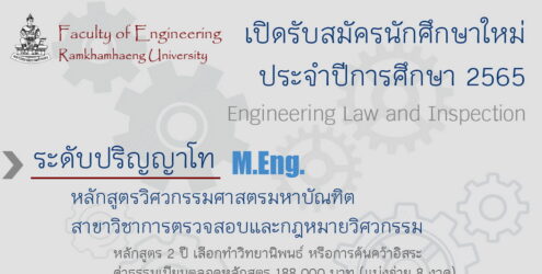คณะวิศวกรรมศาสตร์ ม.รามคำแหง เปิดรับสมัครนักศึกษาใหม่ สาขาวิชาการตรวจสอบและกฎหมายวิศวกรรม ประจำปี 2565
