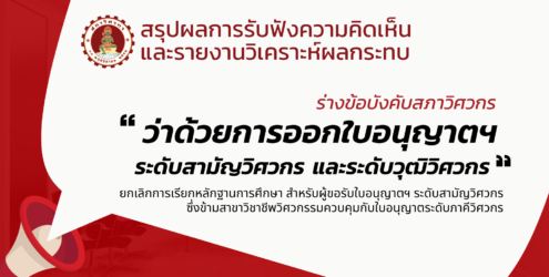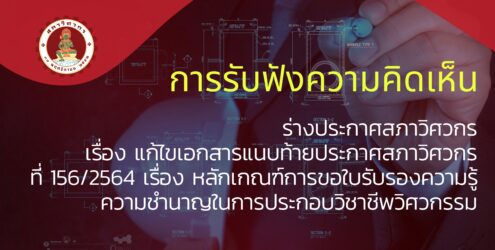 ขอเชิญร่วมแสดงความคิดเห็น ร่างระเบียบคณะกรรมการสภาวิศวกร ว่าด้วยองค์ความรู้พื้นฐานทางวิทยาศาสตร์ องค์ความรู้พื้นฐานทางวิศวกรรม และองค์ความรู้เฉพาะทางวิศวกรรม ที่สภาวิศวกรจะให้การรับรองปริญญา ประกาศนียบัตร หรือวุฒิบัตรในการประกอบวิชาชีพวิศวกรรมควบคุม (ฉบับที่ ..) พ.ศ. ….