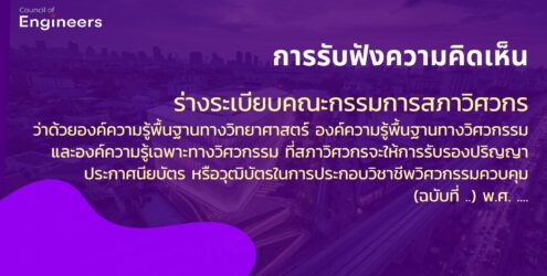 เพื่อให้การรับรองปริญญา ประกาศนียบัตร หรือวุฒิบัตรในการประกอบวิชาชีพวิศวกรรมควบคุมเป็นไปตามวัตถุประสงค์และอำนาจหน้าที่ของสภาวิศวกรตามพระราชบัญญัติวิศวกร พ.ศ. 2542 โดยไม่มีลักษณะเป็นการเลือกปฏิบัติ หรือก้าวก่ายการจัดการศึกษาของสถาบันอุดมศึกษา โดยกำหนดองค์ความรู้พื้นฐานทางวิทยาศาสตร์ องค์ความรู้พื้นฐานทางวิศวกรรม องค์ความรู้เฉพาะทางวิศวกรรม สาขาวิศวกรรมโยธา สาขาวิศวกรรมเครื่องกล สาขาวิศวกรรมไฟฟ้า สาขาวิศวกรรมอุตสาหการ สาขาวิศวกรรมเหมืองแร่ สาขาวิศวกรรมเคมี และสาขาวิศวกรรมสิ่งแวดล้อม ให้มีความสอดคล้องกับการพัฒนาวิชาชีพวิศวกรรมในปัจจุบัน และเป็นที่ยอมรับในระดับสากลตามข้อกำหนด International Engineering Alliance (IEA) ท่านสามารถร่วมแสดงความคิดเห็น (โปรดคลิก) ตั้งแต่ บัดนี้เป็นต้นไป จนถึงวันที่ 28 พฤศจิกายน 2567 เพื่อประโยชน์ที่สภาวิศวกรจะได้รับความคิดเห็นอันจะเป็นประโยชน์ต่อการพิจารณาในการออกร่างระเบียบดังกล่าวได้อย่างเหมาะสมต่อไป หมายเหตุ : สมาชิกที่เข้าร่วมแสดงความคิดเห็นจะได้รับ CPD 2 หน่วย