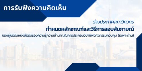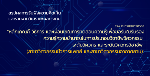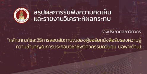 สรุปผลการรับฟังความเห็นและรายงานวิเคราะห์ผลกระทบ ร่างประกาศสภาวิศวกร ที่../….เรื่อง หลักเกณฑ์และวิธีการสอบสัมภาษณ์ของผู้ขอรับหนังสือรับรองความรู้ความชำนาญ ในการประกอบวิชาชีพวิศวกรรมควบคุม (เฉพาะด้าน)