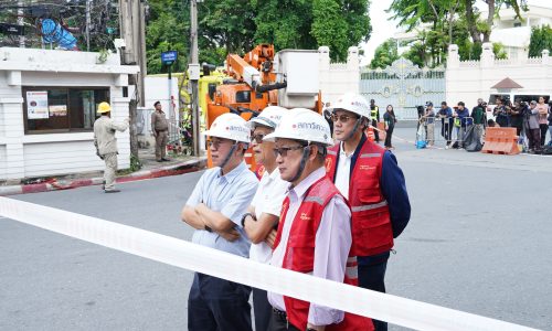 นายกสภาวิศวกรและอุปนายกสภาวิศวกร คนที่ 2 พร้อมผู้เชี่ยวชาญลงพื้นที่ติดตามสถานการณ์และเข้าร่วมรับฟังรายงานการตรวจสอบปัญหาถนนทรุดตัว บริเวณด้านหน้าโรงพยาบาลวชิระพยาบาล