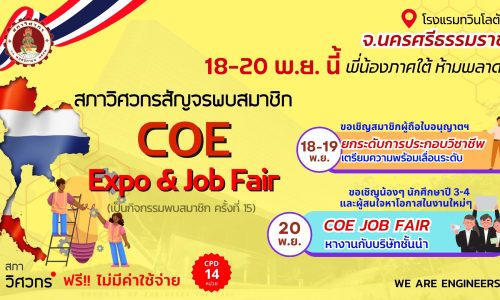วิศวกรห้ามพลาด! “COE Expo ครั้งที่ 15” บุกใต้! 18–19 พฤศจิกายนนี้ ที่นครศรีธรรมราช (Onsite เท่านั้น)