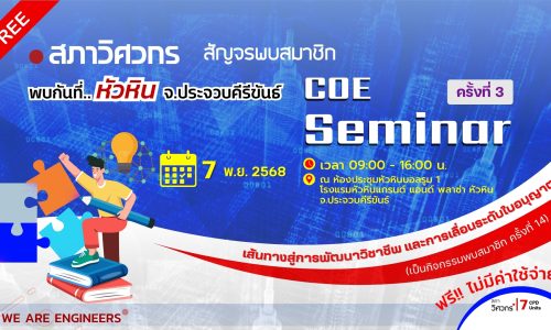 📢 เตรียมตัวให้พร้อม แล้วพบกันที่งาน COE Expo ครั้งที่ 15 งานของวิศวกรไทย ที่รวบรวมองค์ความรู้ เทคนิค และการอัปเดตทุกเรื่องที่วิศวกรควรรู้ พร้อมกิจกรรมเวิร์กช็อปแบบเจาะลึก! 🔍 หัวข้อสำคัญในครั้งนี้ 📅 18 – 19 พฤศจิกายน 2568 ⏰ 09.00 – 16.00 น.📍 ณ ห้องอรพินธ์ โรงแรม ทวินโลตัส จังหวัดนครศรีธรรมราช (จัดแบบ Onsite เท่านั้น) ✅ เข้าร่วมฟรี! รับ CPD 14 หน่วย 🚀 มาพบกันที่นครศรีธรรมราช เปิดมุมมองใหม่ พัฒนาไปด้วยกัน แล้วเจอกันที่งาน! วันงานขอให้ผู้เข้าร่วมงานดำเนินการ ดังนี้