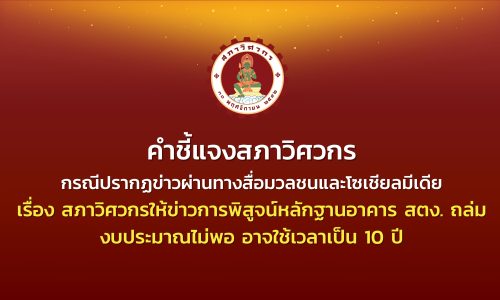 ตามที่ได้ปรากฏข้อมูลเผยแพร่ผ่านทางสื่อมวลชนและโซเชียลมีเดีย กรณีที่อาจทาให้เกิดความเข้าใจคลาดเคลื่อนต่อผู้รับข่าวสารได้ว่า สภาวิศวกรเป็นผู้ให้ข่าวเกี่ยวกับการพิสูจน์หลักฐานอาคาร สตง. ถล่ม งบประมาณไม่พอ อาจใช้เวลาเป็น 10 ปี นั้น สภาวิศวกรขอชี้แจงว่า การแสดงความคิดเห็น เนื้อหา ข้อมูล และบทความในเรื่องดังกล่าวที่เผยแพร่ผ่านทางสื่อมวลชนและโซเชียลมีเดีย สภาวิศวกรไม่ได้เป็นผู้ให้ข่าวแต่อย่างใด การแถลงข่าวในนามของสภาวิศวกรจะกระทาผ่านช่องทางและบุคคลที่ได้รับมอบหมายอย่างเป็นทางการเท่านั้น เพื่อให้ข้อมูลที่เผยแพร่มีความถูกต้องและเป็นไปตามอานาจหน้าที่ของสภาวิศวกรตามพระราชบัญญัติวิศวกร พ.ศ. 2542 สภาวิศวกรขอให้ผู้รับข่าวสารทุกท่านตรวจสอบแหล่งที่มาของข้อมูลและข่าวสารที่ได้รับ เพื่อป้องกันการเข้าใจผิดและการเผยแพร่ข้อมูลที่ไม่ถูกต้อง หากมีข้อสงสัยหรือคำถามเพิ่มเติมเกี่ยวกับเรื่องใด ๆ สามารถติดต่อสอบถามได้ที่สภาวิศวกรโดยตรง จึงประกาศมาเพื่อทราบโดยทั่วกันคณะทำงานเผยแพร่ข่าวสารสภาวิศวกร13 พฤษภาคม 2568