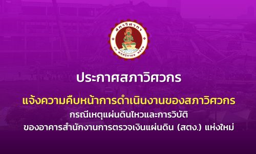 ประกาศสภาวิศวกรเรื่อง แจ้งความคืบหน้าการดำเนินงานของสภาวิศวกร เพิ่มเติม (ฉบับที่ 2)กรณีเหตุแผ่นดินไหวและการวิบัติของอาคารสำนักงานการตรวจเงินแผ่นดิน (สตง.) แห่งใหม่ ตามที่ได้เกิดเหตุการณ์อาคารสำนักงานการตรวจเงินแผ่นดิน (สตง.) แห่งใหม่ถล่มจากเหตุแผ่นดินไหวเมื่อวันที่ 28 มีนาคม 2568 ซึ่งส่งผลให้มีผู้เสียชีวิตและบาดเจ็บจำนวนมาก สร้างความเสียหายทั้งต่อชีวิต ทรัพย์สิน และความเชื่อมั่นของประชาชนต่อระบบการควบคุมงานก่อสร้างในประเทศ สภาวิศวกรในฐานะองค์กรวิชาชีพที่มีหน้าที่กำกับดูแลการประกอบวิชาชีพวิศวกรรมควบคุม ได้ดำเนินการในหลายด้านอย่างต่อเนื่องและได้สรุปผลการดำเนินการตามประกาศ เรื่อง แจ้งความคืบหน้าการดำเนินงานของสภาวิศวกรกรณีเหตุแผ่นดินไหวและการวิบัติของอาคารสำนักงานการตรวจเงินแผ่นดิน (สตง.) แห่งใหม่ ฉบับลงวันที่ 19 พฤษภาคม 2568 บัดนี้ จึงขอแจ้งความคืบหน้าการดำเนินการเพิ่มเติม ดังนี้ 1. การหาสาเหตุ สภาวิศวกรได้แต่งตั้งคณะทำงานเฉพาะกิจเพื่อดำเนินการศึกษารายละเอียดแบบแปลนอาคารสำนักงานแห่งใหม่ของสำนักงานการตรวจเงินแผ่นดิน (สตง.) โดยมีวัตถุประสงค์เพื่อสนับสนุนภารกิจของสภาวิศวกรและยังมีกระบวนการตรวจสอบข้อเท็จจริงที่อยู่ภายใต้การกำกับดูแลของคณะกรรมการสอบสวนข้อเท็จจริง ซึ่งได้รับการแต่งตั้งโดยรัฐมนตรีว่าการกระทรวงมหาดไทย โดยคณะกรรมการฯ มีหน้าที่ในการรวบรวมพยานหลักฐานและข้อมูลทางวิศวกรรมที่เกี่ยวข้อง เพื่อประกอบการพิจารณาและสรุปผลการสืบสวนพร้อมความเห็นและรายงานต่อรัฐมนตรีว่าการกระทรวงมหาดไทย ทั้งนี้ คาดว่าคณะกรรมการสอบสวนจะสามารถสรุปผลการดำเนินงานได้ภายในเดือนมิถุนายน พ.ศ. 2568 ตามกรอบระยะเวลาที่กำหนดไว้และเมื่อได้ข้อสรุปแล้ว สภาวิศวกรจะดำเนินการพิจารณาขยายผลในประเด็นที่เกี่ยวข้องตามอำนาจหน้าที่และตามข้อเสนอแนะของสมาชิกต่อไป 2. การให้ความรู้แก่สมาชิก สภาวิศวกรยังคงมุ่งมั่นในการส่งเสริมและเผยแพร่ความรู้ทางวิศวกรรมแก่สมาชิกและสาธารณชนอย่างต่อเนื่อง โดยได้จัดทำรายการ “คุยเฟื่องเรื่องวิศวกรรมกับสภาวิศวกร” ซึ่งเป็นรายการเสวนาทางวิชาการที่นำเสนอประเด็นสำคัญในแวดวงวิศวกรรมในรูปแบบที่เข้าใจง่ายและเข้าถึงได้ เมื่อวันพุธที่ 21 พฤษภาคม พ.ศ. 2568 […]