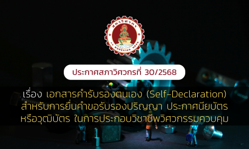สภาวิศวกรขอเผยแพร่ประกาศสภาวิศวกร เรื่อง เอกสารคำรับรองตนเอง (Self-Declaration) สำหรับการยื่นคำขอรับรองปริญญา ประกาศนียบัตร หรือวุฒิบัตร ในการประกอบวิชาชีพวิศวกรรมควบคุม (มีผลบังคับใช้วันที่ 9 กรกฎาคม 2568) โดยมีสาระสำคัญ ปรับปรุงเอกสารคำรับรองตนเอง (Self-Declaration) ให้สอดคล้องตามระเบียบคณะกรรมการสภาวิศวกร ว่าด้วยองค์ความรู้พื้นฐานทางวิทยาศาสตร์ องค์ความรู้พื้นฐานทางวิศวกรรมและองค์ความรู้เฉพาะทางวิศวกรรมที่สภาวิศวกรจะให้การรับรองปริญญา ประกาศนียบัตรหรือวุฒิบัตรในการประกอบวิชาชีพวิศวกรรมควบคุม (ฉบับที่ 2) พ.ศ. 2567 และเพื่อให้ลักษณะบัณฑิตที่พึงประสงค์สอดคล้องกับ IEA Graduate Attributes and Professional Competencies: Ver.4: June 2021 สำหรับการยื่นขอรับรองปริญญาประกาศนียบัตรหรือวุฒิบัตรในการประกอบวิชาชีพวิศวกรรมควบคุม