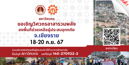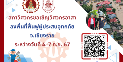 📣📣สภาวิศวกร ขอเชิญวิศวกรอาสาลงพื้นที่ช่วยเหลือผู้ประสบอุทกภัยในจังหวัดเชียงราย ครั้งที่ 2 ระหว่างวันที่ 18 – 20 กันยายน 2567 ลงทะเบียนภายในวันที่ 16 กันยายน 2567 เวลา 17.00 น. 🔴 สามารถลงทะเบียนได้ที่นี่ >>>> คลิก สมาชิกที่ลงทะเบียนเรียบร้อยแล้วขอให้ท่านกดเข้ากลุ่ม Line ลงพื้นที่ >>> คลิก สภาวิศวกรขอนัดประชุมวิศวกรอาสา เพื่อกำหนดแนวทางในการลงพื้นที่ จ.เชียงราย ครั้งที่ 2 ในวันที่ 16 กันยายน 2567 เวลา 13.30 น. ผ่าน Zoom Link : ประชุมวิศวกรอาสา เพื่อกำหนดแนวทางในการลงพื้นที่ จ.เชียงราย ครั้งที่ 2Time: Sep 16, 2024 13:30 Bangkok Join Zoom Meetinghttps://us02web.zoom.us/j/81641138178?pwd=rCYHK9cBxHwraHTXh0LDpmwtKxmcHL.1 Meeting ID: […]