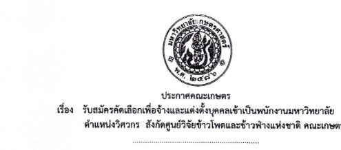 1 Jul 2022ม.เกษตรศาสตร์เปิดรับสมัครคัดเลือกเพื่อจ้างและแต่งตั้งบุคคลเข้าเป็นพนักงานมหาวิทยาลัย ตำแหน่งวิศวกร