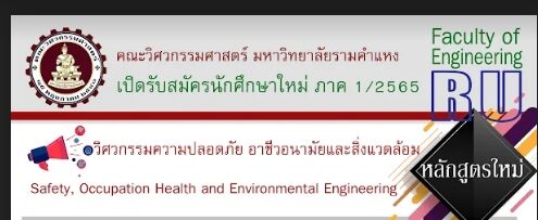 23 Aug 2022คณะวิศวกรรมศาสตร์ ม.รามคำแหง เปิดรับสมัครนักศึกษาใหม่ วิศวกรรมความปลอดภัย อาชีวอนามัยและสิ่งแวดล้อม