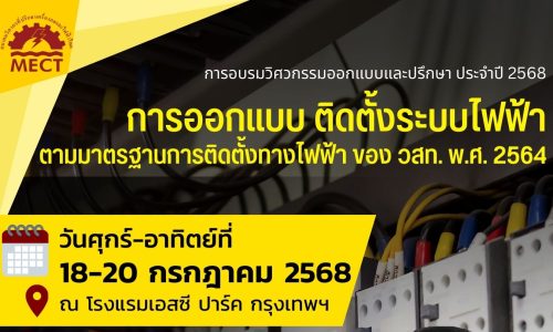 สมาคมวิศวกรที่ปรึกษาเครื่องกลและไฟฟ้าไทย ขอเชิญเข้าร่วมอบรมหลักสูตร การออกแบบ ติดตั้งระบบไฟฟ้าตามมาตรฐานการติดตั้งทางไฟฟ้า ของ วสท. พ.ศ. 2564