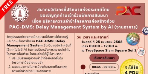 สมาคมช่างเหมาไฟฟ้าและเครื่องกลไทย ขอเชิญชวนสมาชิกสภาวิศวกรเข้าร่วมสัมมนาจำนวน 2 เรื่อง ➡️เรื่องการติดตั้งระบบทำน้ำเย็น 📅 วันจันทร์ที่ 31 มีนาคม 2568⏰ เวลา 09.00 – 16.00 น.📍 ณ โรงแรมไอบิส สไตล์ รัชดา 💰 ค่าเข้าร่วมสัมมนา 📢 ลงทะเบียนด่วน! คลิก📢 ใบสมัครคลิก ➡️ เรื่องการบริหารสัญญา 📅 วันจันทร์ที่ 31 มีนาคม และวันอังคารที่ 1 เมษายน 2568⏰ เวลา 17.00 – 19.00 น.🌐 รูปแบบ: Online (สัมมนาออนไลน์) 💰 ค่าเข้าร่วมสัมมนา 📢 ลงทะเบียนด่วน! คลิก